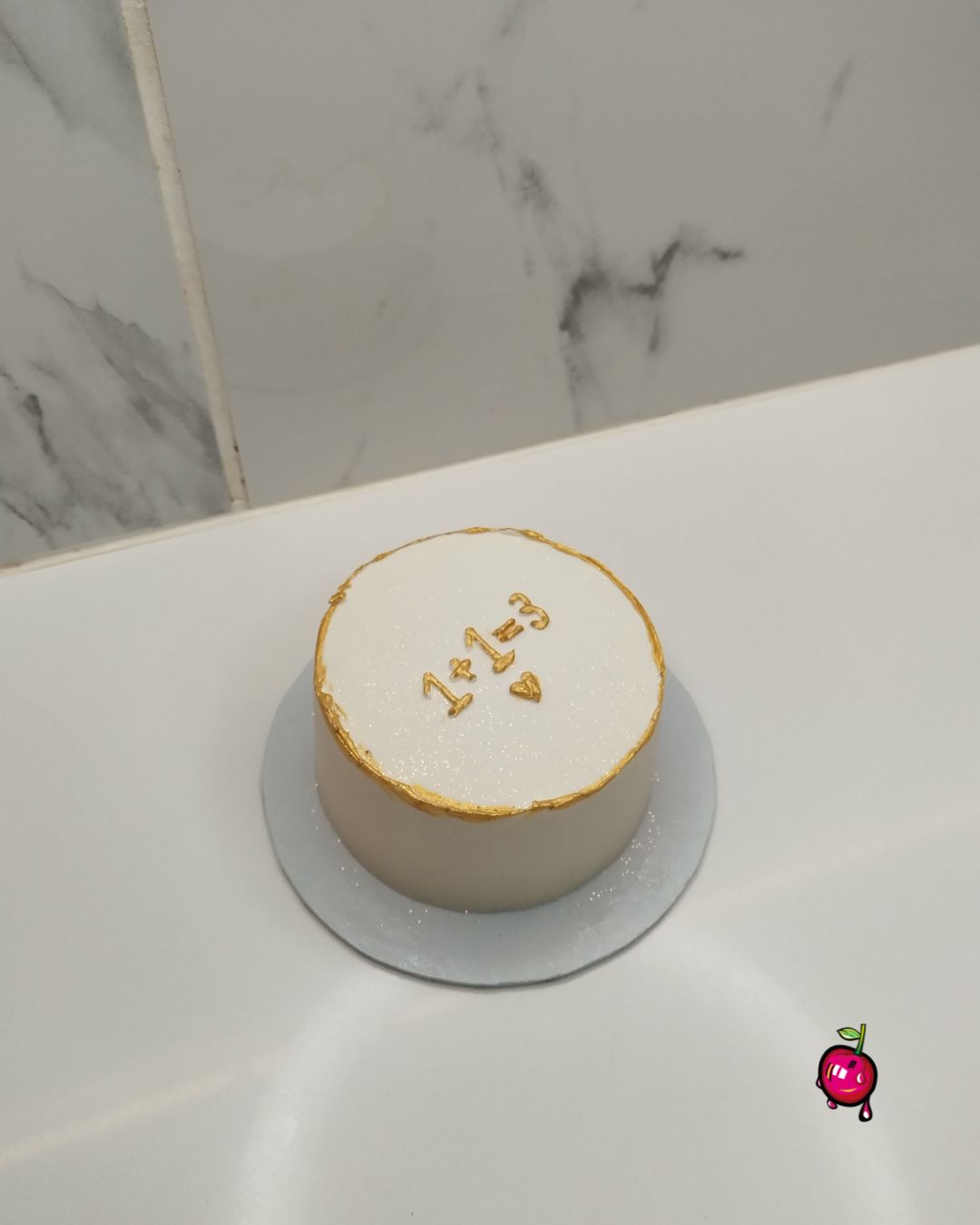 Announce your special news with our sophisticated 1+1=3 Bento Cake – a beautiful white miniature cake adorned with luxurious gold writing and border. This elegant gender reveal cake is the perfect way to share your joy with loved ones.