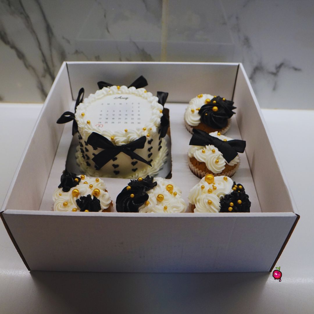 Black & White Burn away Bento Cake & Cupcakes (Aug)