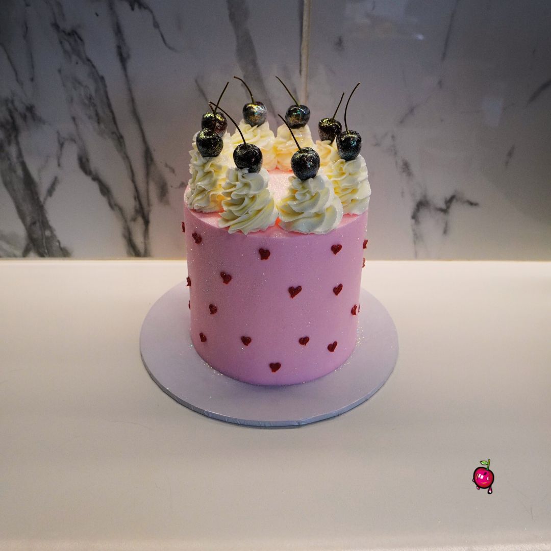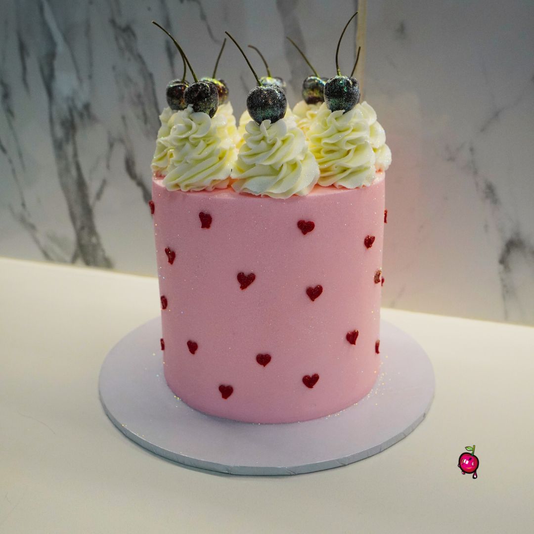 Sweet, playful, and full of charm — our Pink Hearts & Cherries Cake is a showstopper for any celebration.